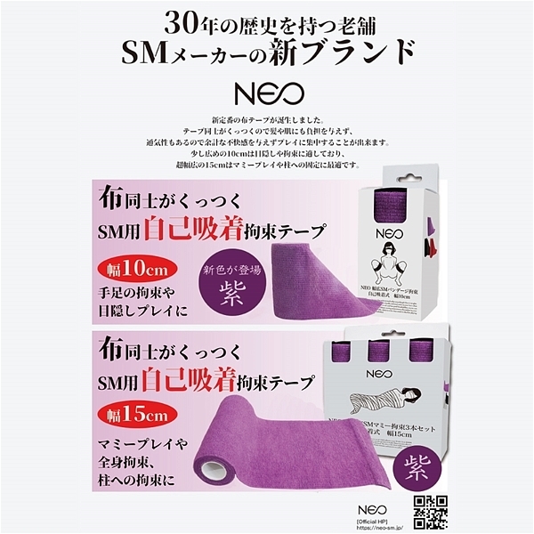 <NEO>超幅広SMマミー拘束3本セット 自己吸着式 幅15cm 紫