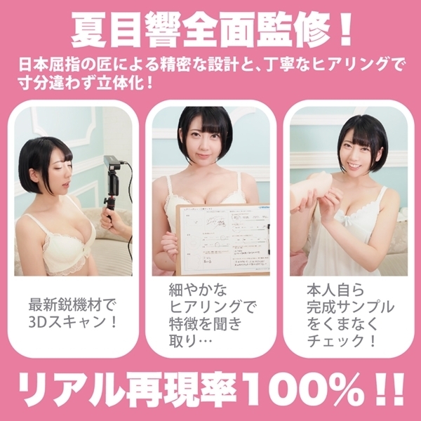 人気AV女優・夏目響さんをモデルにした非貫通型オナホールです♪長舌と小顔を精密に3Dスキャンし、実際のフェイスラインを忠実に再現しました!500gを超える肉厚感と、人工粘膜を使用した2層構造により、リアルなフィット感を実現するオナホです♪口腔内部には、巻き付くような長舌や、細かなディテールのパーツがしっかり配置され、使用時のリアリティを高めています!歯や唇の構造も徹底再現されており、見た目だけでなく、使用感も細部までこだわり抜いた仕上がりです。