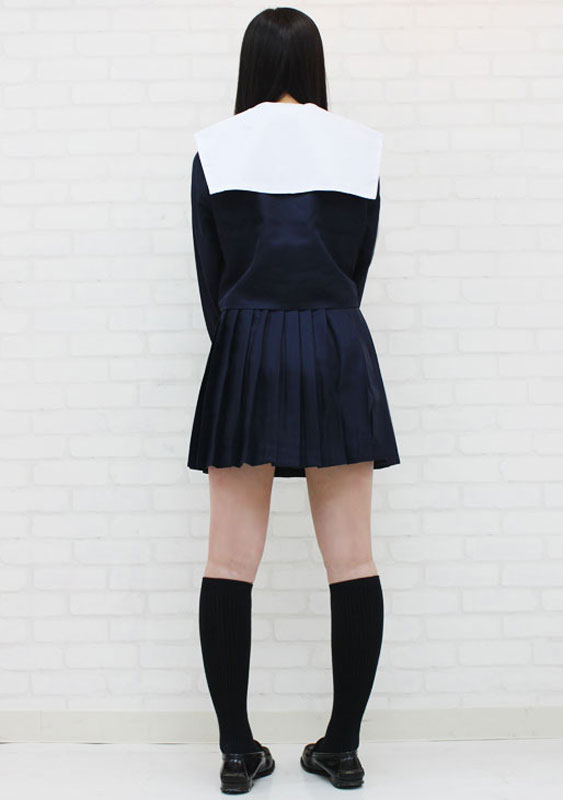 紺地に真っ白な襟がキュート!黒スカーフがマッチした制服コスチューム。