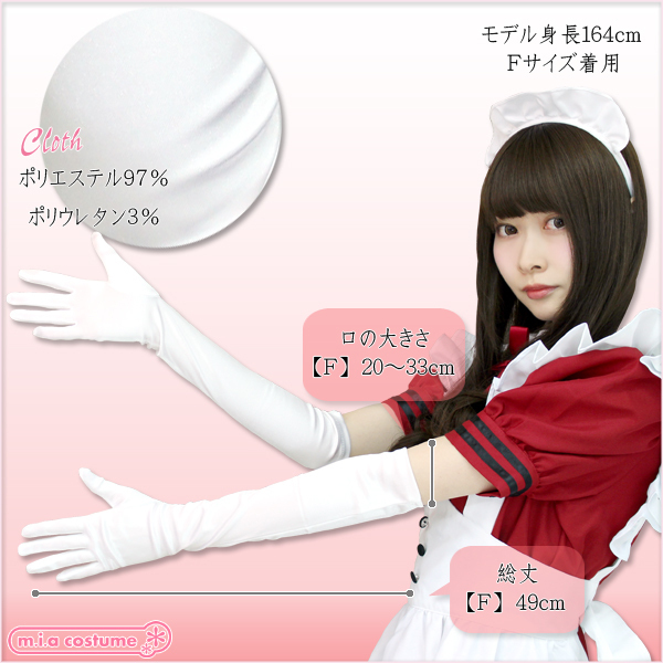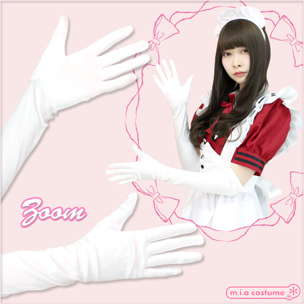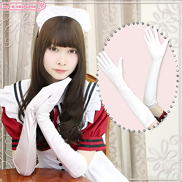 プリンセスドレス、メイド服、チャイナドレスなどのコスプレやワンピースにも合わせられるロング手袋(白)。