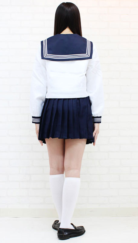 青いリボンが爽やか!春・秋仕様のキュートなセーラー服コスプレ。