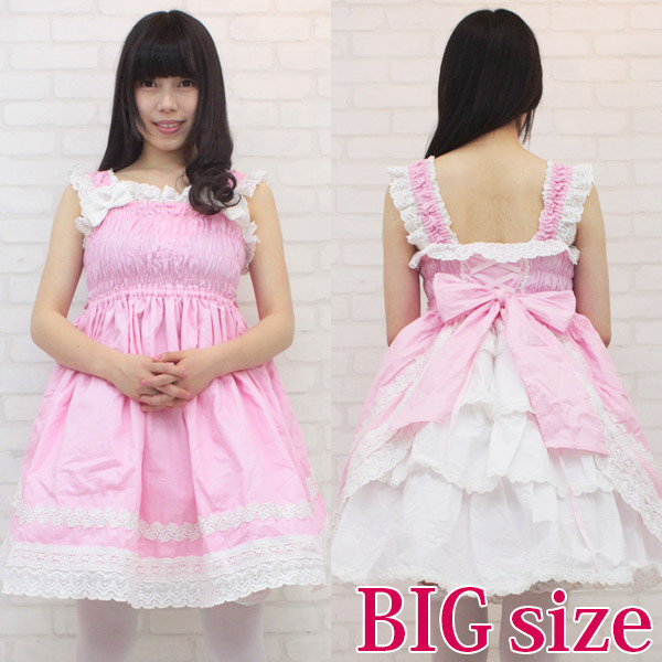 BIGサイズ:B76〜110cm・W70〜116cm 丈:ジャンパースカート88cm セット内容:ジャンパースカート(横ファスナー、後ろ編み上げ、バストからウエスト部分シャーリングあり、肩紐ゴム入り、スカート部分裏地有り)