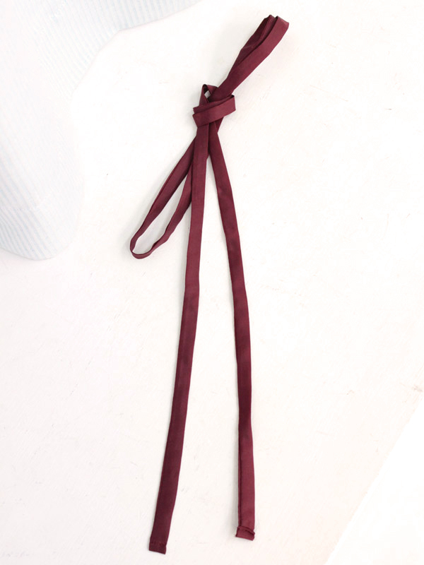 ひも状の細長いリボンを襟元で結べば、お嬢様学校風のスタイルに早変わり!女の子らしさが際立つエンジ色で、キュートなスクールガールになれちゃう紐タイです。