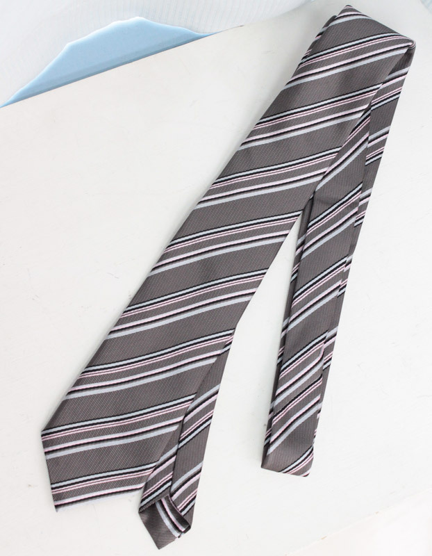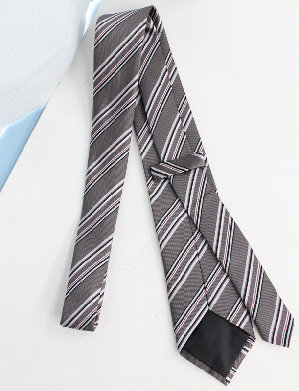 グレー地にピンクラインを施した、お洒落キュートなスクールネクタイ(単品)。