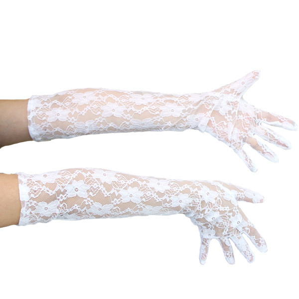ホワイトカラーの花柄レースで手元を美しく上品に飾る、ロング丈のレース手袋。