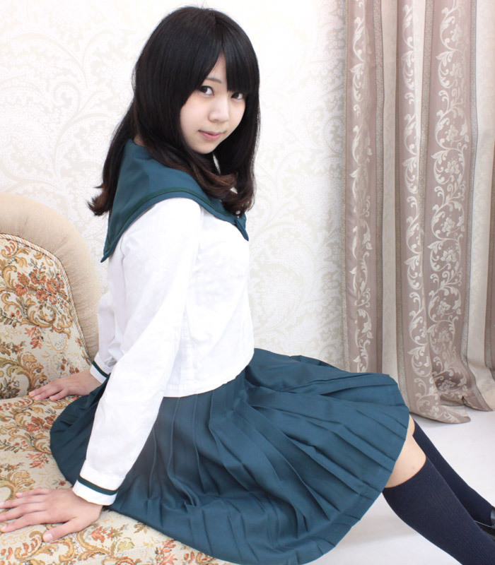 黒でも紺でもない落ち着いた緑色が新鮮!白い部分とのコントラストが映えるセーラー服。