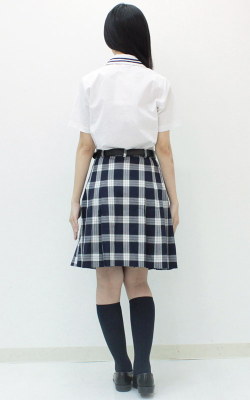セーラー服より大人っぽい!大きな襟の上着と白黒チェックの巻きスカートが爽やかなコスチューム。