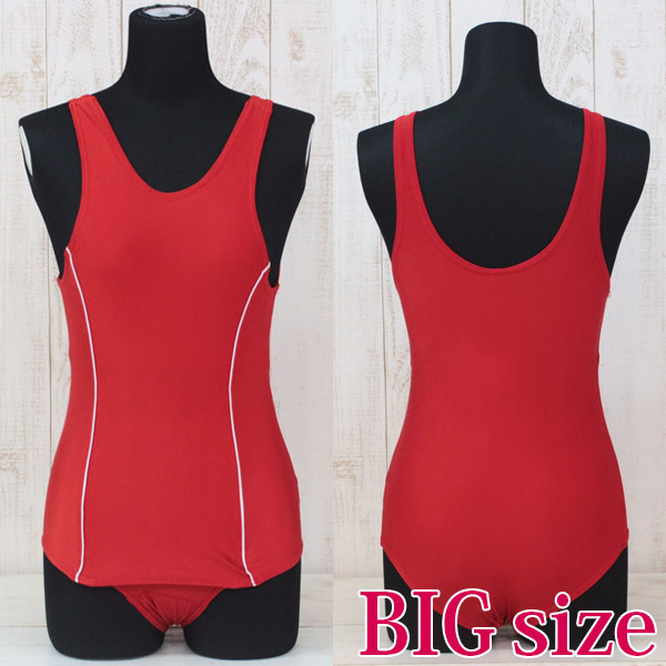 BIGサイズ:B86〜108cm・W76〜104cm・H78〜116cm セット内容:スクール水着(裏地付き・水抜き付き・前身頃の切り返し部分に白ライン入り) 素材:ポリエステル100%