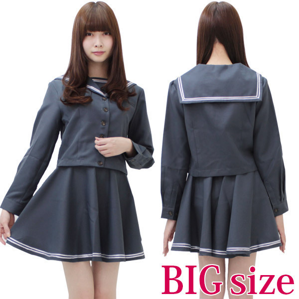 ●BIGサイズだからぽっちゃりさんや女装男子も着用可能●長袖セーラートップスはフロントボタン開き●フレアスカートがプリーツでは出せない素敵なシルエットを作ります。