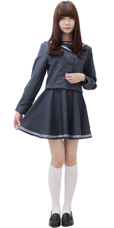 チャコールグレーに白のダブルラインが珍しい!有名学校の制服コスチューム。