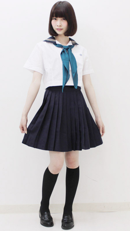 ●ホワイト×ネイビー×グリーンの夏制服●襟の切り替えがオシャレなトップスは胸元刺繍入りポケット付き●程よい長さのプリーツスカート●雰囲気がグッと上がるグリーンカラーのスカーフ●男性でも着られる大きめBIGサイズ。