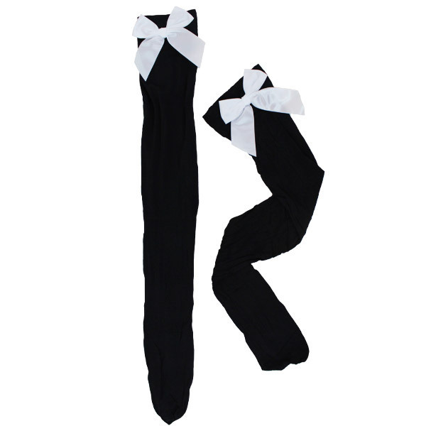トップページ > 衣装・コスチューム > 小物(猫耳カチューシャ・ニーソ) > リボン付きニーハイ 黒×白リボン