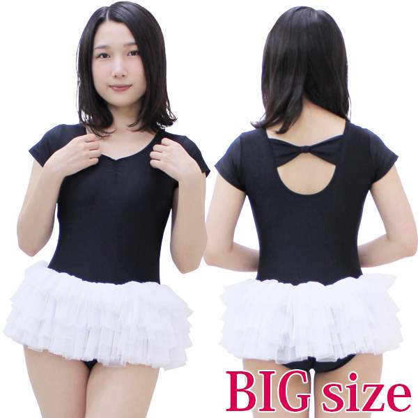 BIGサイズ:B66〜106cm・W62〜98cm・H70〜108cm・着丈57cm・袖丈11.5cm・スカート丈18cm セット内容:レオタード単品(一部当て布付き) 素材:ポリエステル、ポリウレタン、チュール