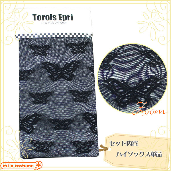 トップページ > 衣装・コスチューム > 小物(猫耳カチューシャ・ニーソ) > 蝶柄ハイソックス 黒 フリーサイズ
