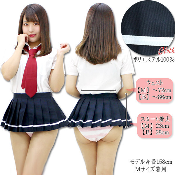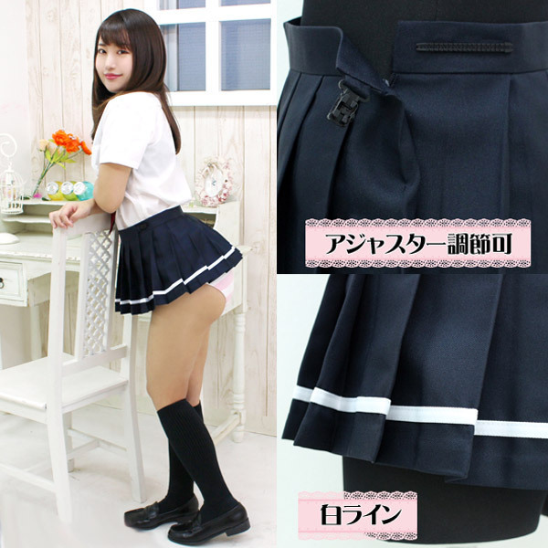 大人気の超ミニスカートシリーズにライン入りモデルの「超ミニ無地プリーツスカート単品 紺×白ライン M」が登場。