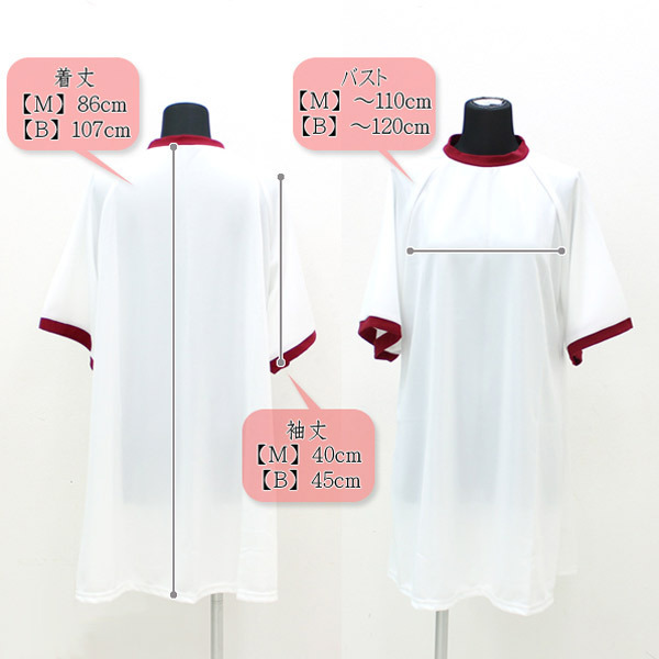 Mサイズ:B〜110cm 着丈86cm 袖丈40cm 素材:ポリエステル65%、コットン35% 体操着ルームウェア 色:エンジ