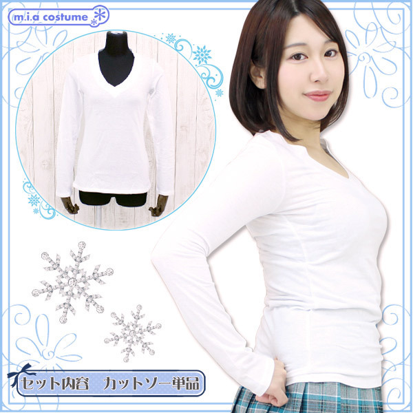 トップページ > 衣装・コスチューム > その他 > アメリカ製の高品質な綿100%レディースVネック長袖カットソー 白 Mサイズ