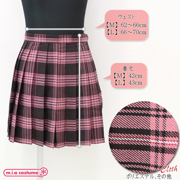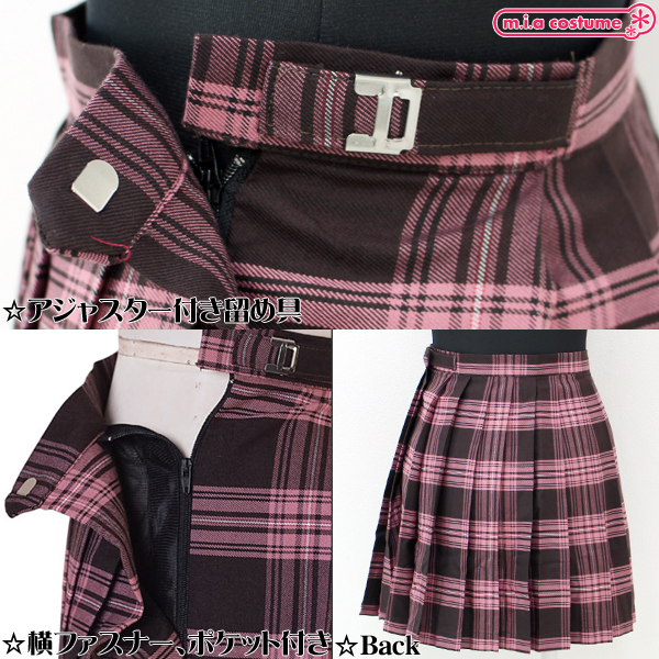 トップページ > 衣装・コスチューム > 小物(猫耳カチューシャ・ニーソ) > ポケット付きのチェック柄プリーツスカート単品 ピンク×ブラウン Mサイズ