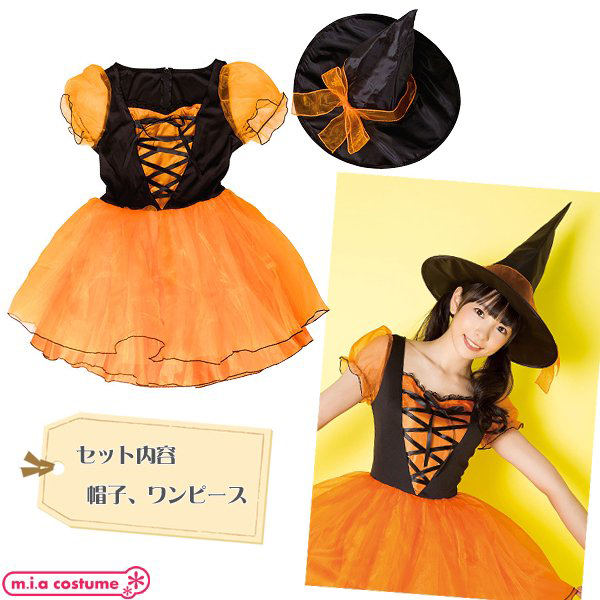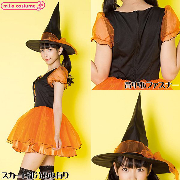 パフ袖やスカートに透明感のあるオーガンジー素材を使用しお洒落にデザイン!別途パニエを合わせれば、よりふんわり感アップ♪可愛いウィッチガールになれちゃいます。