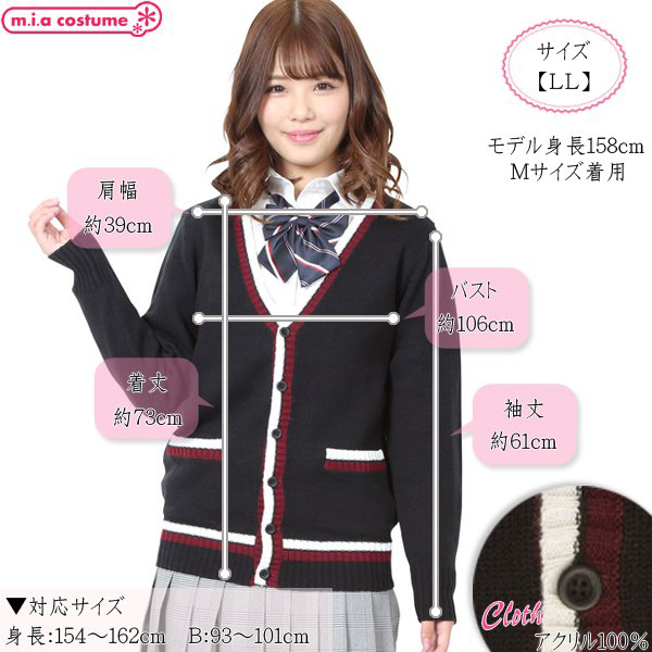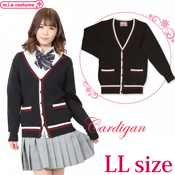制服コスプレや普段使いにも♪配色ラインをスッと効かせて、メリハリ良く仕上げた柔らかく肌触りのよいニットカーディガンです。