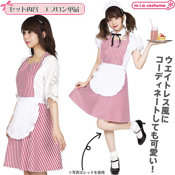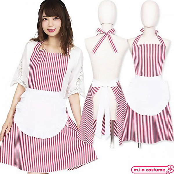 トップページ > 衣装・コスチューム > 小物(猫耳カチューシャ・ニーソ) > フリルストライプエプロン レッド