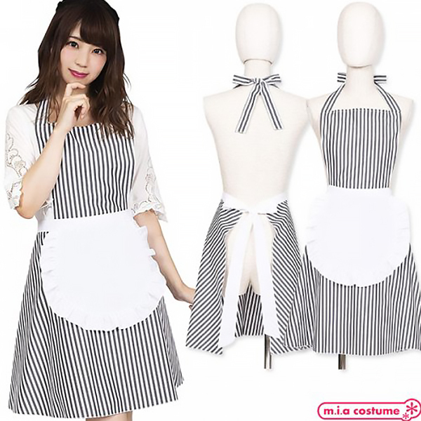 トップページ > 衣装・コスチューム > 小物(猫耳カチューシャ・ニーソ) > フリルストライプエプロン ブラック