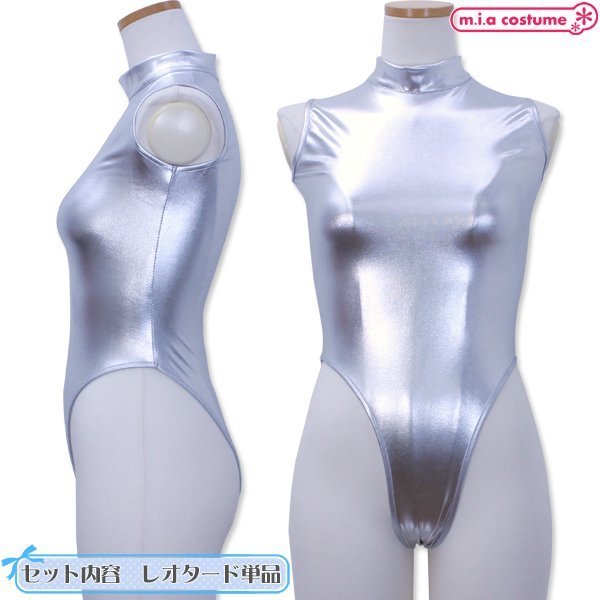 エナメルのような光沢感がまぶしいハイネックレオタードです。