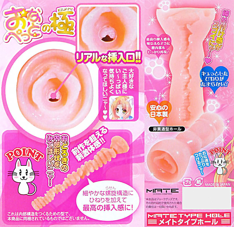 内部はシリーズでは珍しい、細かいヒダにひねりを加えたスパイラル構造!締め付け感と、マッタリとしたヒダ刺激を楽しめるオナホール(非貫通型)です。