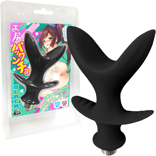 お尻の中で弾ける快感!尻穴でパカッと開口するシリコン素材の電動アナルプラグ「お尻パックンチョ ブラック」。