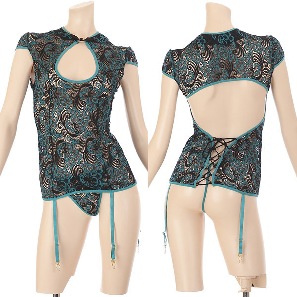 色鮮やかなエメラルド色が美しい、チャイナに見せかけたベビードールのテティス·シノワ。