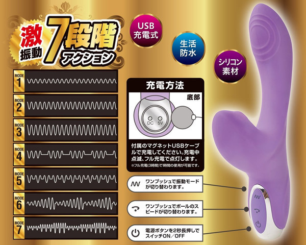 本体部分は7段階ファンクションの激振動がGスポットを狙い撃ちするフィット形状!さらに膣全体にその振動が行き渡ります。
