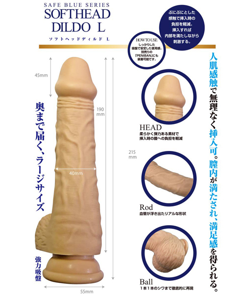 トップページ > ディルドー(張形) > ディルドー(張形) > セーフブルー ソフトヘッドディルド (L)