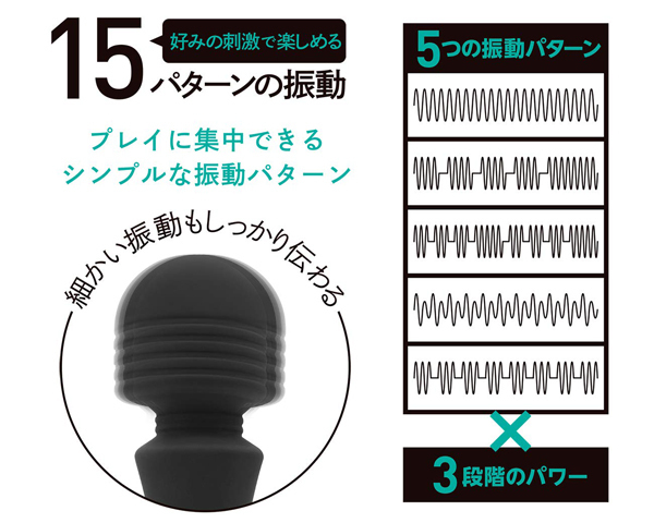 また、ファンクション5パターン×振動3パターンで計15パターンの刺激が楽しめる。