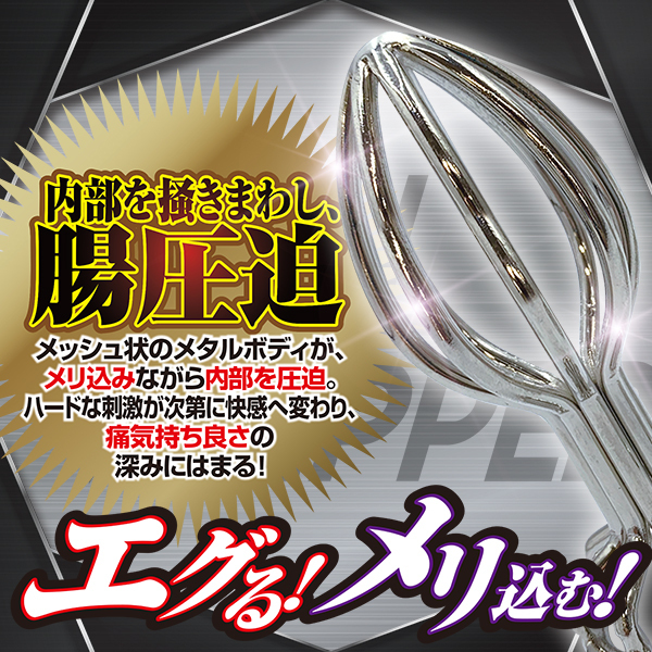 エグる!メリ込む!内部を掻きまわし、腸圧迫!メッシュ状のメタルボディがメリ込みながら内部を圧迫。