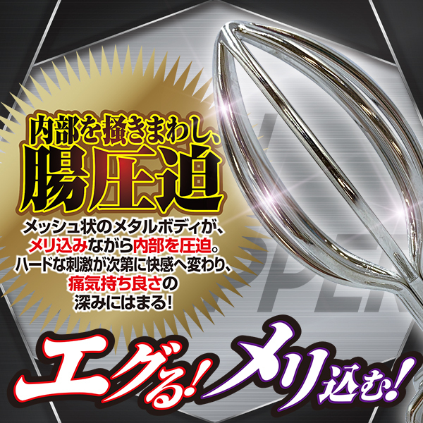 エグる!メリ込む!内部を掻きまわし、腸圧迫!メッシュ状のメタルボディがメリ込みながら内部を圧迫。