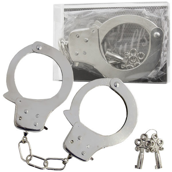 ポリスコスチュームのお供に必須!適度な重さと質感が扱いやすい手錠「イージーカフス」。コスプレをするなら、やっぱり小道具までこだわりたいところ!こちらの手錠は、付属の鍵(2個)が無くても解錠される仕様になっているので、気軽に使えるのがポイントです。