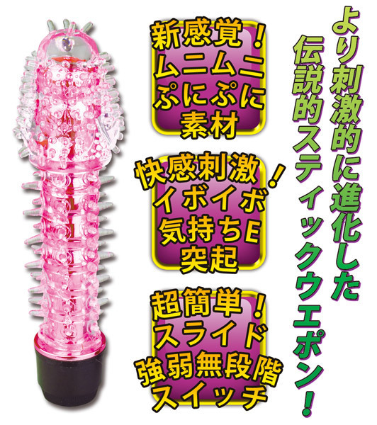 人気のイカセルシリーズにイボ付きが登場!びっしりと生えた刺激的な見た目とは裏腹に、プニっと心地よい感触で内部に快感刺激を与えてくれるスティックバイブです。