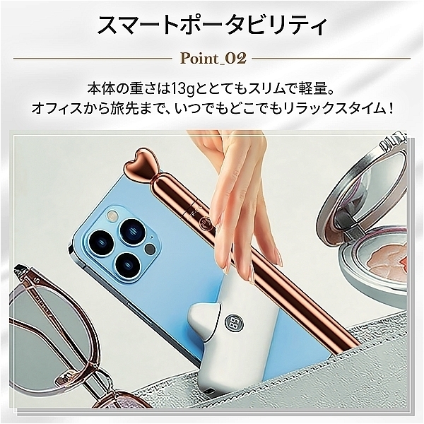 携帯に便利な手のひらサイズのスタイリッシュなマッサージャーが登場!10種の振動パターンでご自身のライフスタイルに合わせて使い分け。