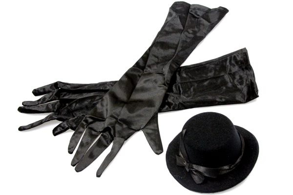 Mサイズ(平置き):B37〜43cm・W33〜40cm・Hフリー 丈:前身頃68cm/後ろ身頃115cm セット内容:ワンピース(背面ファスナー)・ロング手袋×2(全長42cm)・ミニハット(クリップ留め)