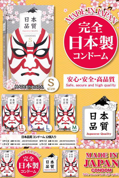 ユニークなスキンで性感染症を予防しよう!日本の技術力が生んだ、安心度の高い歌舞伎風デザインのおもしろコンドームMサイズ12個入り。