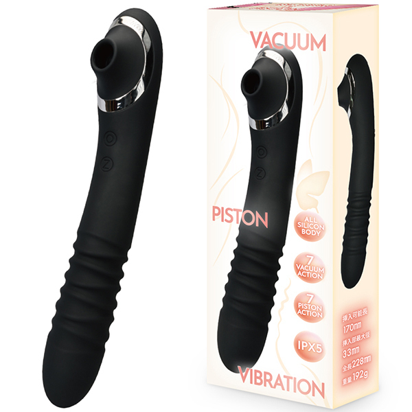 ロング挿入が可能なストレートタイプのピストンバイブの反対側に吸引ローターが搭載された二役アイテム登場です。