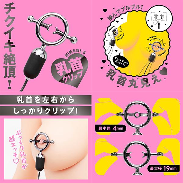挟んでブルブル!見られてはずかち!乳首丸見えエチエチの乳首ローター!クリップで挟んだぷっくり乳首が丸見え!えちえち絶景!乳首を左右からしっかり固定!小さい乳首から大きい乳首まで色んなサイズに対応しています。
