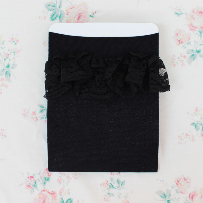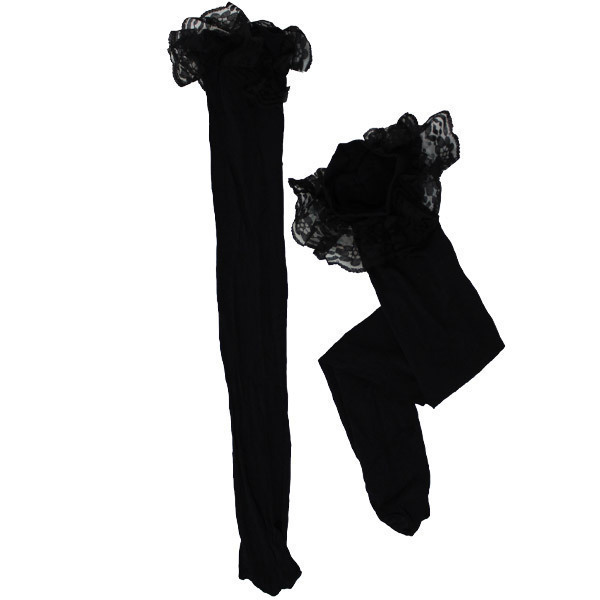 【440円★数量限定】レース付きニーハイ 黒×黒<お一人様1点限り>