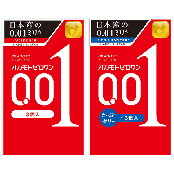 オカモト史上最薄!異次元の密着感を実現した、うすさ0.01ミリ台のポリウレタン製コンドーム※【セット内容】オカモトゼロワン 3個入(u00472)、オカモトゼロワン たっぷりゼリー 3個入(u00472)
