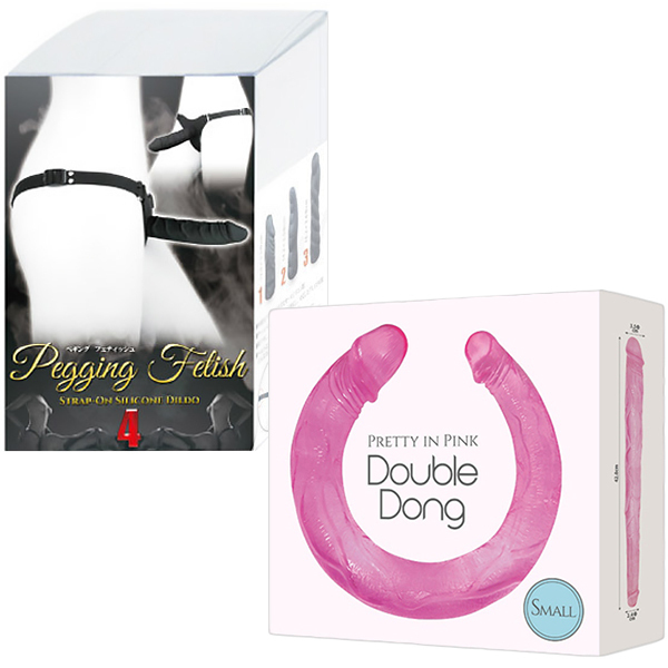 双頭ディルドで二人で感じるも良し、ペニスバンドで責め立てるも良し!※【セット内容】ペギング フェティッシュ 4(b23814)、プリティインピンク ダブルドング S(b28293)