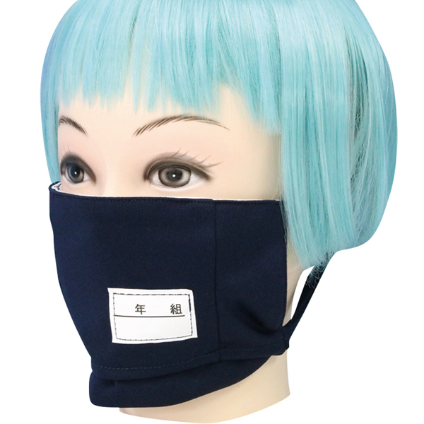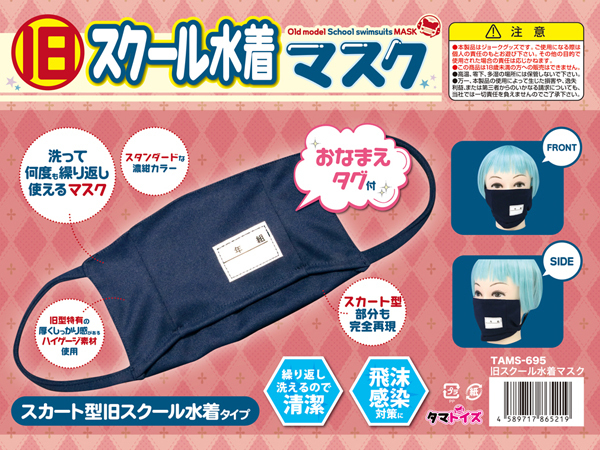 スカート部分まで完全再現!洗って繰り返し使える人気の旧型スク水風に仕立てたネイビーカラーのユニークマスク。