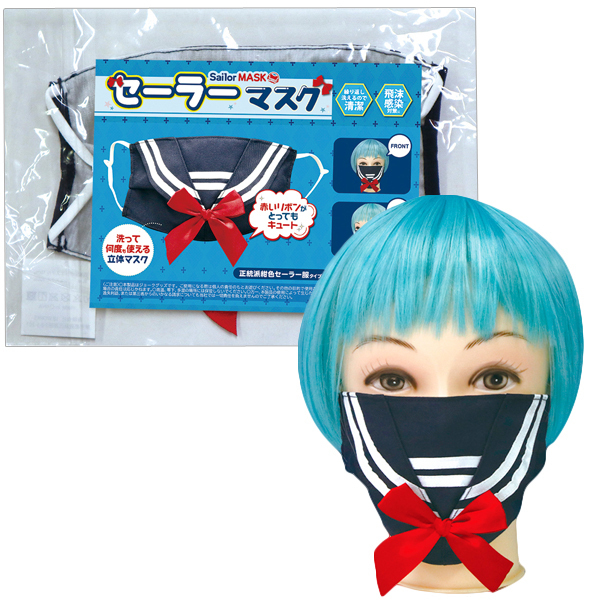 定番の紺色セーラーをそのままマスクにしたようなデザインが特徴!鼻から顎までしっかり覆い隠します。