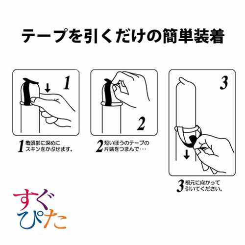 テープを引くだけ!簡単にスピード装着が出来るお手軽コンドーム「すぐぴた2000」12個入。