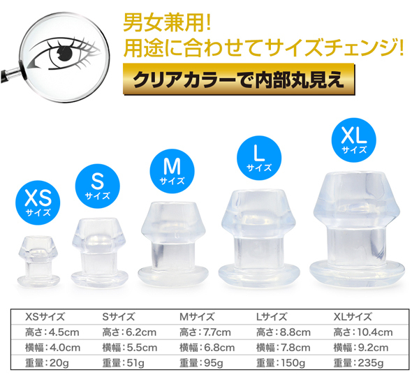 少し大きいアナタでも安心♪内部が丸見えな拡張トンネルプラグ!内部穴360度見渡せる極上の光景幅広いプレーが可能な多用途プラグ柔軟性と形状保持力を備えた透明色の拡張アイテムです。
