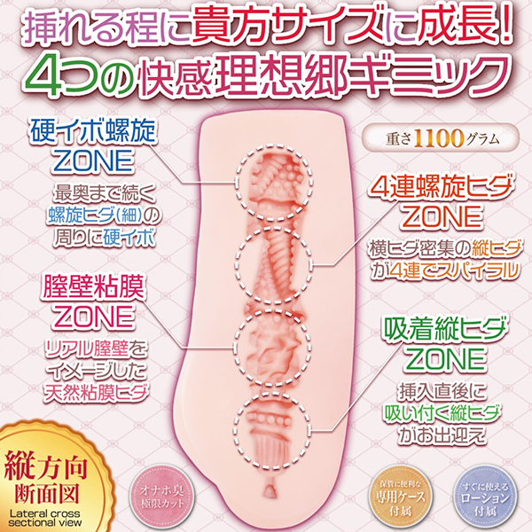 内部構造は「吸着縦ヒダ・膣壁粘膜・4連螺旋ヒダ・硬イボ螺旋」と4つの快感ギミックを網羅。